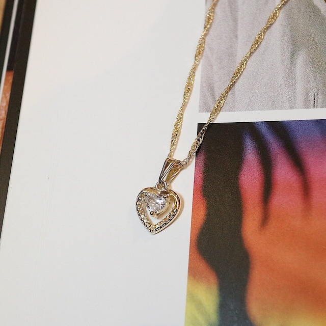 Mini CZ Heart Pendant Necklace ~チェーンセット~